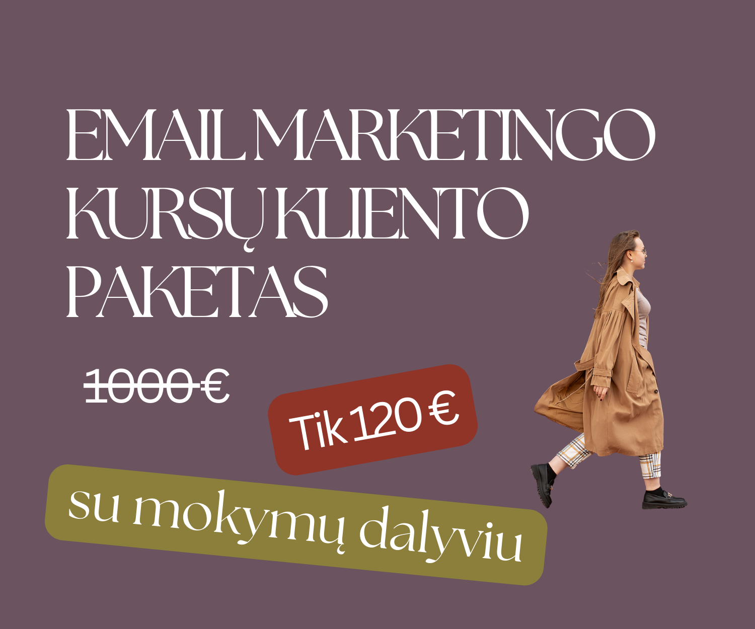Vedu 5 savaičių email marketingo kursus, kurių metu įsilieti į rinką rengiu būsimus naujienlaiškių specialistus, tapk šių mokymų dalyvio klientu ir vietoj 600-900 eur paketo mokėk tik dalyvio mokestį – 120 eur.